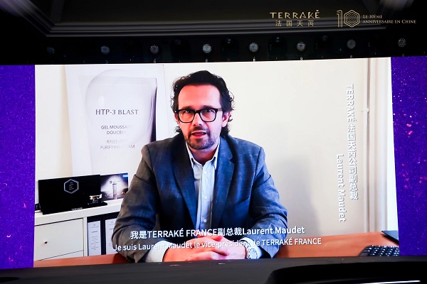 慶典活動(dòng)開(kāi)始之際,法國(guó)巴黎總部的TERRAKÉ法國(guó)天芮公司副總裁Laurent Maudet,通過(guò)現(xiàn)場(chǎng)連線向參會(huì)的所有嘉賓表示了感謝和祝福。
