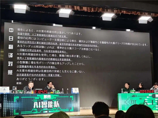 以專業(yè)名詞為例,本次“人機大戰(zhàn)”中的比賽難度到達(dá)了史無前例的高度。不僅涵蓋了日常生活的方方面面,更以醫(yī)學(xué)場景為例,將“內(nèi)窺鏡技術(shù)”和“增生性息肉”等醫(yī)學(xué)專業(yè)領(lǐng)域術(shù)語融入其中。評委席武波教授表示:“這樣的專業(yè)詞匯難度甚至是最頂尖的同傳工作者也需要認(rèn)真準(zhǔn)備很久才能勝任的,我相信即便是中文,在場的也很少有人能夠完全理解這幾個詞匯,更何況要進(jìn)行同傳。”面對高難度的行業(yè)專業(yè)詞匯,盡管人工隊前期有針對性的準(zhǔn)備,但因相關(guān)詞匯過于專業(yè),在翻譯過程中還是出現(xiàn)了較大的遺漏。與人工隊有些束手無策的狀態(tài)不同,AI同傳憑借海量訓(xùn)練語料庫和高效算法,以幾乎“全知全能”的狀態(tài),快速高效的完成了對復(fù)雜信息的處理,實現(xiàn)準(zhǔn)確、完整的翻譯。