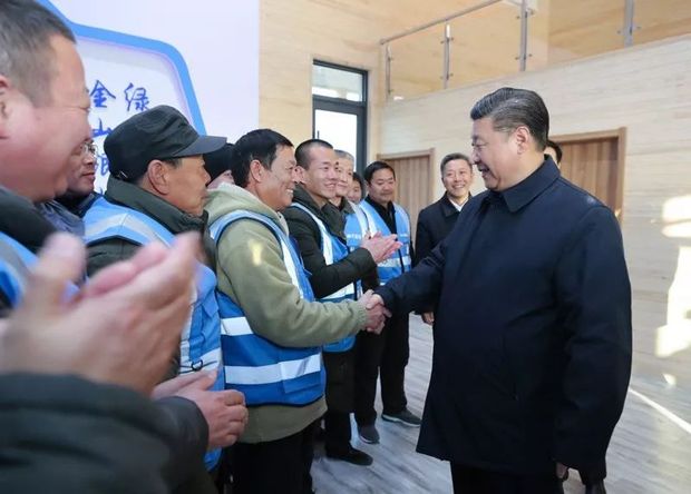 △2019年1月16日下午,習(xí)近平在河北雄安新區(qū)“千年秀林”同參與造林護(hù)林的村民親切握手。