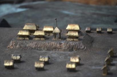 位于浙江省杭州市的良渚國家考古遺址公園內(nèi)展示的良渚古城宮殿的模型(6月23日攝)新華社記者黃宗治攝