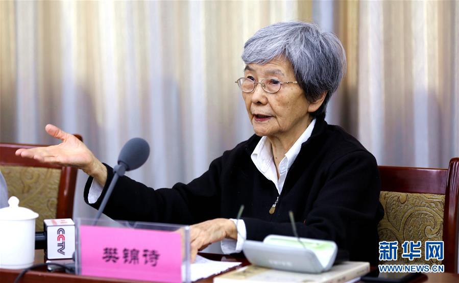 在敦煌研究院學(xué)習(xí)習(xí)近平總書記重要講話座談會上,敦煌研究院名譽院長樊錦詩發(fā)言(8月20日攝)。 新華社記者 郭剛 攝