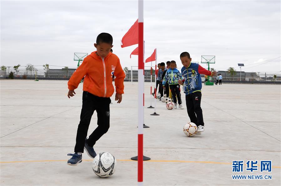 在武威市古浪縣黃花灘生態(tài)移民區(qū)富民新村富民小學(xué),足球興趣小組的孩子們開展訓(xùn)練(8月22日攝)。新華社記者 范培珅 攝