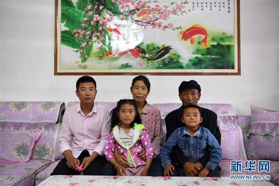 在武威市古浪縣黃花灘生態(tài)移民區(qū)富民新村,村民李應(yīng)川(右一)和家人合影留念(8月22日攝)。 新華社記者 范培珅 攝