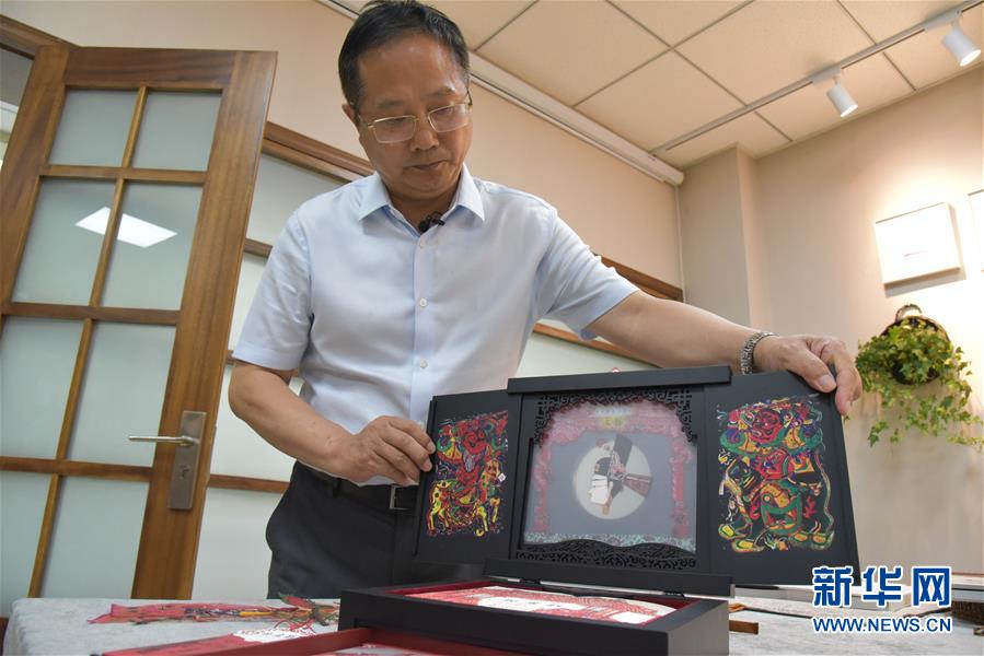 在讀者出版集團有限公司,公司副總經(jīng)理富康年展示手工書《玩皮影》(8月22日攝)。 新華社記者 張睿 攝