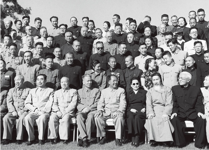 中華人民共和國第一屆全國人民代表大會(huì)第一次會(huì)議全體代表于1954年9月21日合影。 毛澤東主席和代表們在一起。前排左起:董必武、周恩來、李濟(jì)深、劉少奇、毛澤東、宋慶齡、張瀾、林伯渠。 新華社稿 侯波/攝