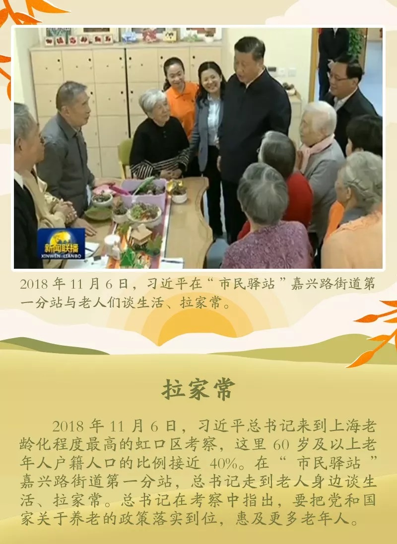 由小家而大家,由父母而天下老人。2016年5月29日,習(xí)總書記在參加中共中央政治局第三十二次集體學(xué)習(xí)時強(qiáng)調(diào),要推動老齡事業(yè)全面協(xié)調(diào)可持續(xù)發(fā)展,要把弘揚孝親敬老納入社會主義核心價值觀宣傳教育。尊老敬賢,習(xí)近平情意濃濃。