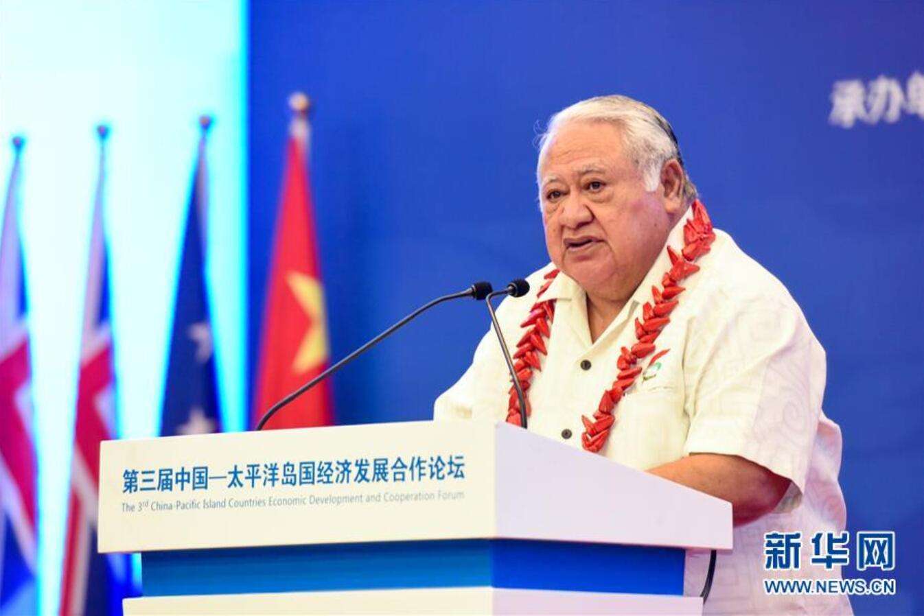 10月21日,在薩摩亞首都阿皮亞,薩摩亞總理圖伊拉埃帕在開幕式上發(fā)表講話。 第三屆中國-太平洋島國經(jīng)濟發(fā)展合作論壇21日在薩摩亞首都阿皮亞舉行。 新華社記者 郭磊 攝
