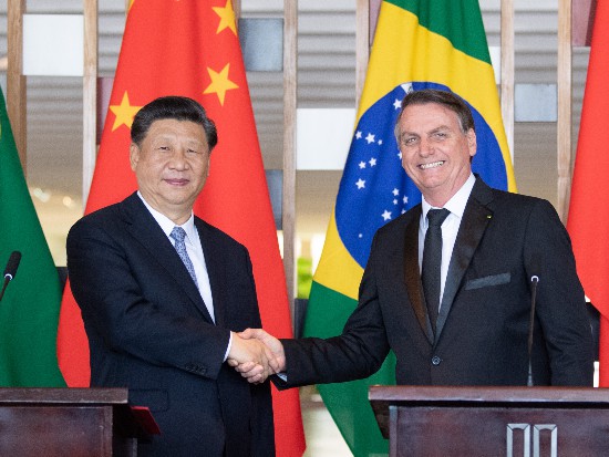 ▲當?shù)貢r間11月13日,國家主席習近平在巴西利亞同巴西總統(tǒng)博索納羅會談。新華社記者李學仁攝