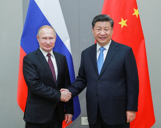 ▲當?shù)貢r間11月13日,國家主席習近平在巴西利亞會見俄羅斯總統(tǒng)普京。新華社記者龐興雷攝