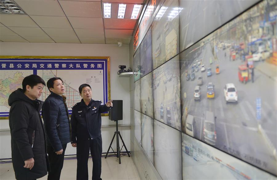 河北省寧晉縣紀(jì)檢干部借助公安機(jī)關(guān)交通監(jiān)控系統(tǒng),實(shí)時(shí)查看公車運(yùn)行軌跡,嚴(yán)查公車私用問(wèn)題(2018年12月29日攝)。 新華社記者 牟宇 攝