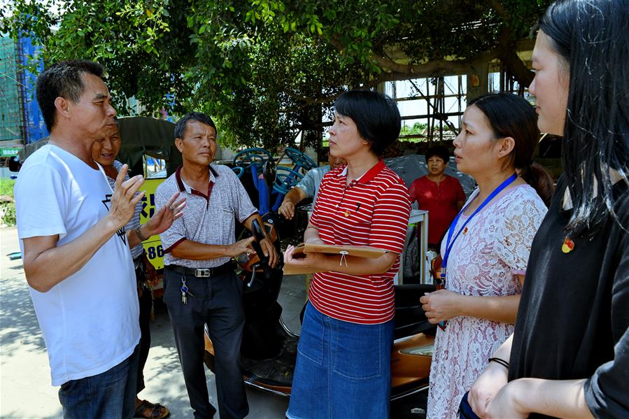 福建省福清市巡察人員在玉屏街道石井村向村民了解惠民資金發(fā)放情況(2019年7月24日攝)。新華社記者 張國(guó)俊 攝