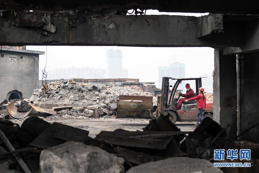 這是宜昌市點(diǎn)軍區(qū)長江南岸的宜昌田田化工有限責(zé)任公司拆除現(xiàn)場(2018年3月30日攝)。新華社記者 杜華舉 攝