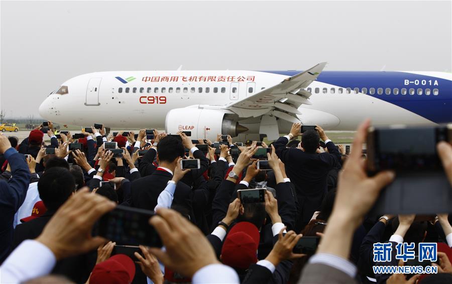 國產(chǎn)大型客機C919在上海浦東國際機場首飛成功(2017年5月5日攝)。新華社記者 方喆攝