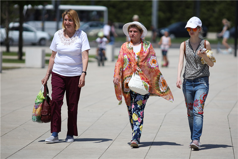 6月1日,人們走在俄羅斯克拉斯諾達(dá)爾街頭。新華社/衛(wèi)星社