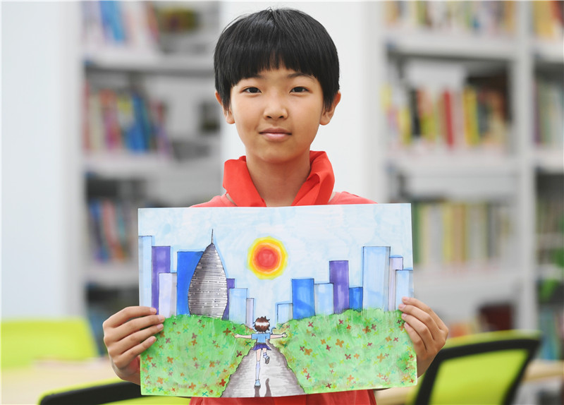 迎著朝陽(yáng)、伴著花海,短發(fā)女孩張開雙臂,全力奔向這座自己憧憬的城市。這,就是三年級(jí)學(xué)生孫銘澤筆下的雄安。因媽媽工作調(diào)動(dòng),孫銘澤跟隨媽媽從遼寧來到雄安,從幼兒園到小學(xué),已超過5個(gè)年頭。在她心中,這里已成為她的另一個(gè)家鄉(xiāng)!靶『⒍枷蛲磥,我要在雄安擁抱我的未來!