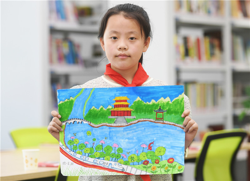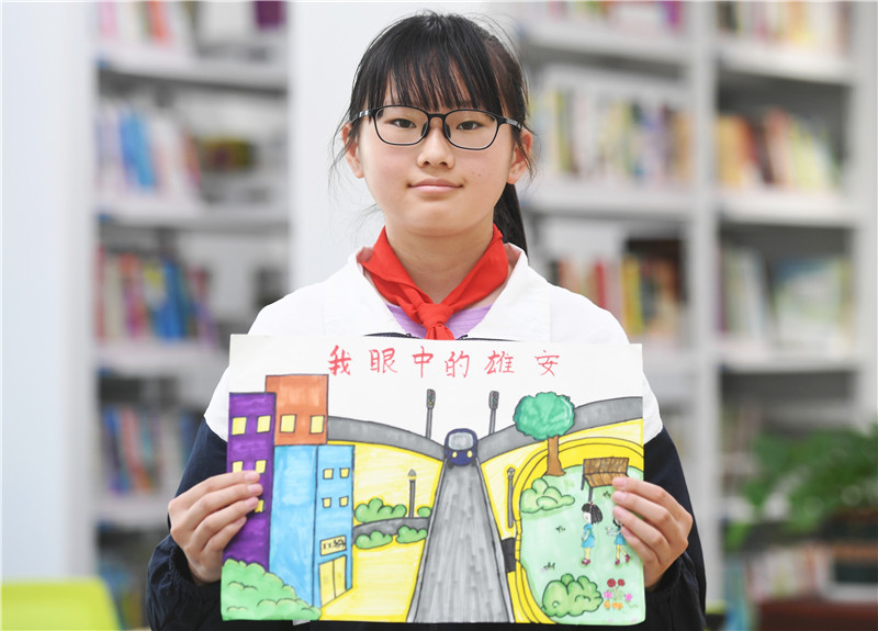 碧綠的湖水、盛開的荷花,掩映在郁郁蔥蔥樹木間的各類造型的建筑。在三年級(jí)的鄭好筆下,她最愛的是金湖公園。雖然僅讀三年級(jí),但因搬遷,鄭好已換過三所學(xué)校。悅?cè)菪W(xué),是她最喜歡也是學(xué)習(xí)條件最好的一所。除基本課程外,她還可以學(xué)習(xí)古箏、創(chuàng)意油畫!拔蚁矚g雄安,喜歡看這里的風(fēng)景,我把它畫下來,希望能有更多人了解它、喜歡它。”