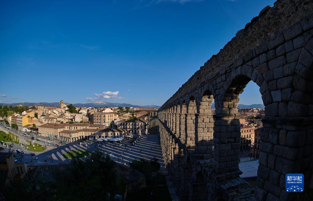 這是5月10日拍攝的西班牙塞哥維亞古羅馬高架引水渠。