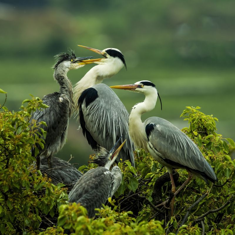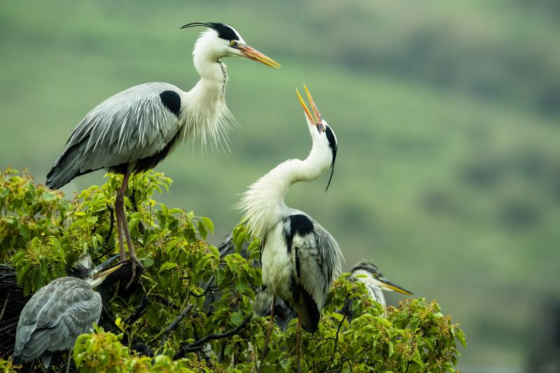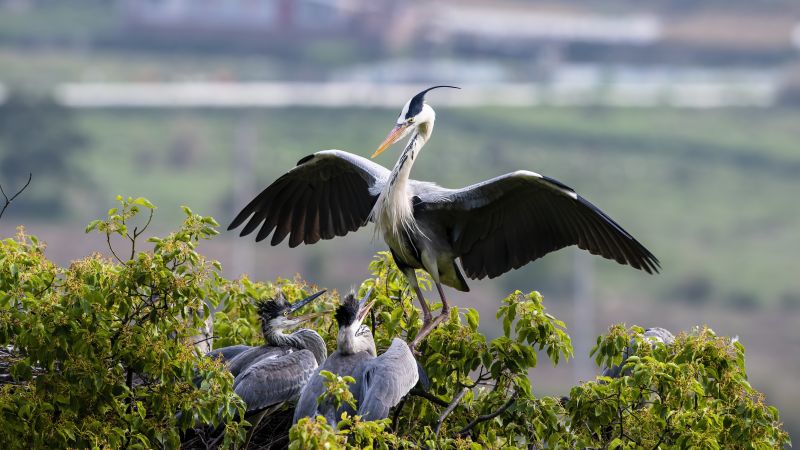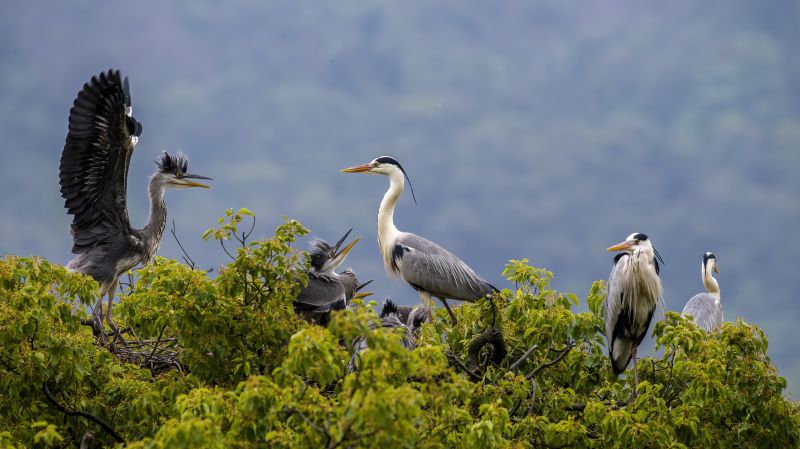 福建省羅源縣碧里鄉(xiāng)濂澳村后山的樹(shù)叢中,蒼鷺在嬉戲(5月2日攝)。新華社記者 梅永存 攝