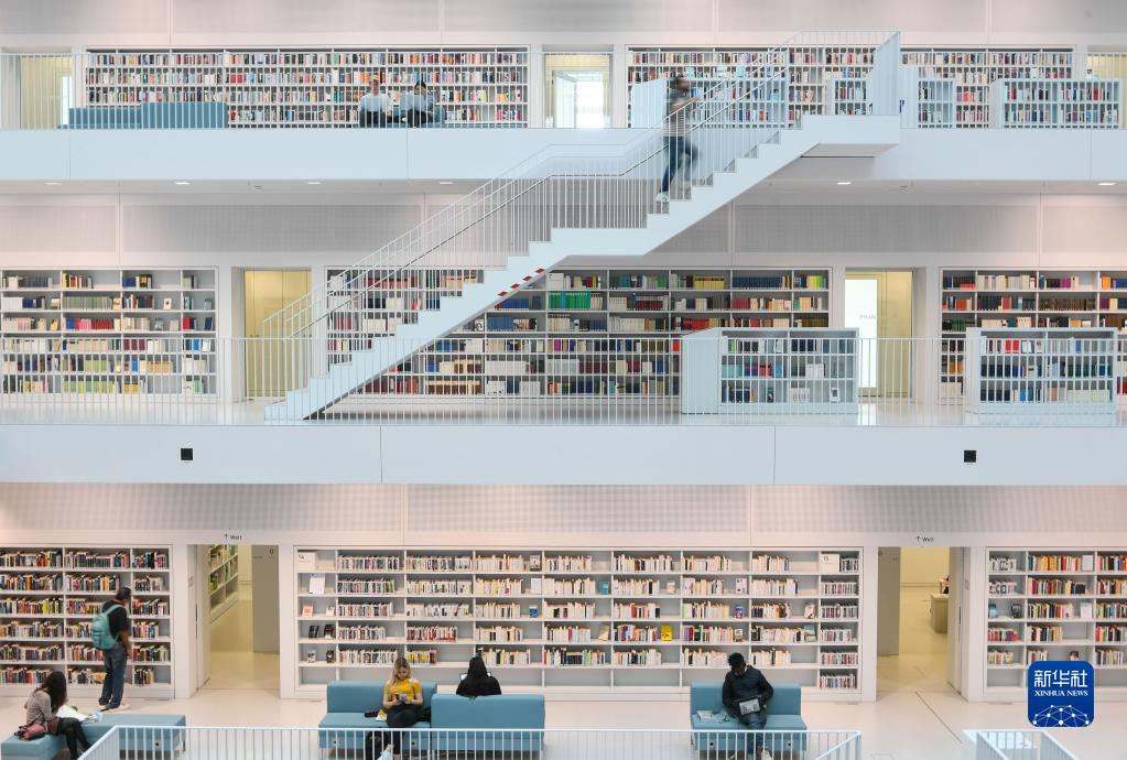 4月19日,人們在德國斯圖加特市立圖書館內(nèi)參觀。