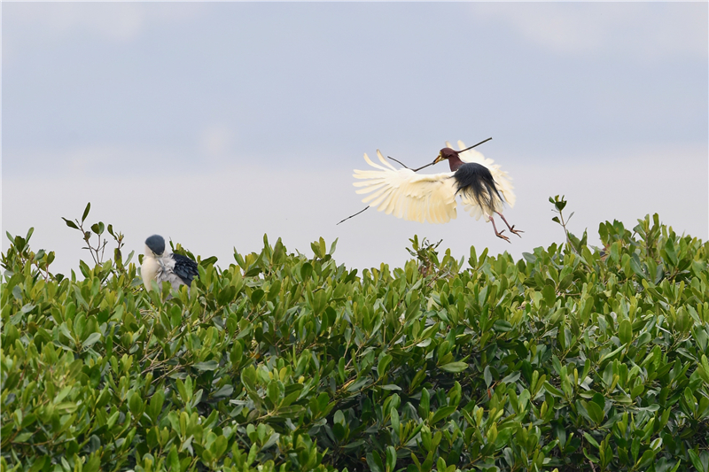時下正值鷺鳥筑巢繁殖季節(jié),福建省福清市江鏡鎮(zhèn)沿海紅樹林成為白鷺、夜鷺、池鷺等鷺鳥棲息繁衍的場所。