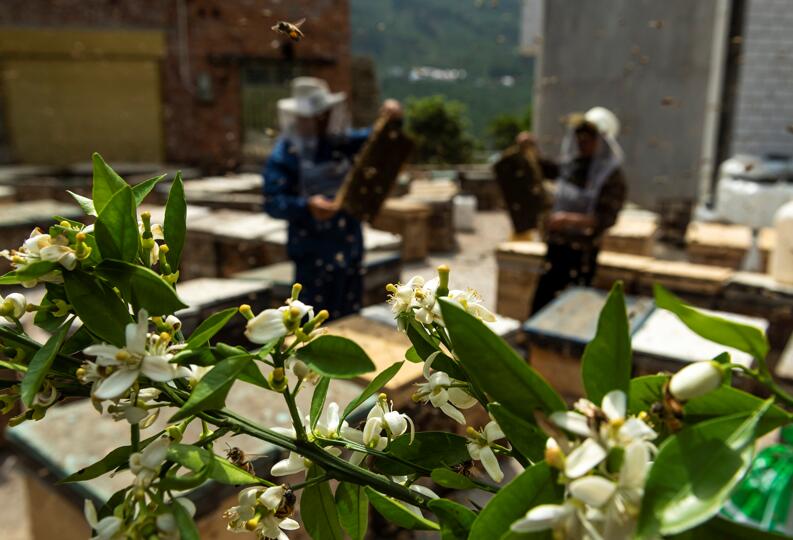 眼下,三峽庫區(qū)湖北省宜昌市秭歸縣柑橘正值盛花期,養(yǎng)蜂人忙著采收柑橘花蜜,增加收入。 新華社發(fā)(鄭家裕攝)