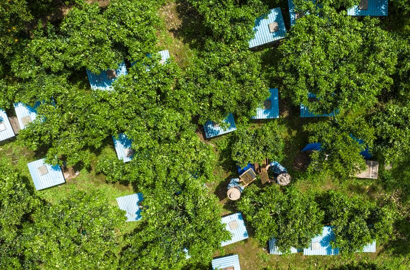 4月18日,秭歸縣歸州鎮(zhèn)屈原廟村養(yǎng)蜂人在柑橘園檢查蜂箱(無人機(jī)拍攝)。 新華社發(fā)(鄭家裕攝)