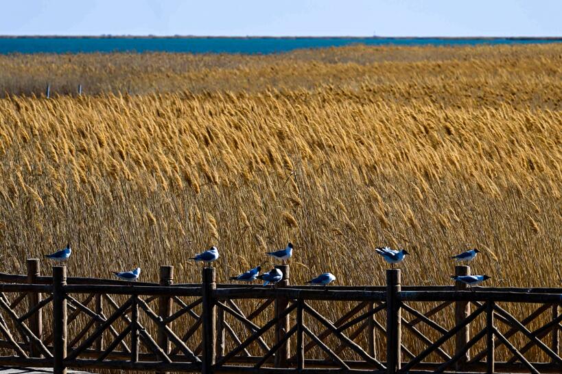 4月13日在居延海濕地拍攝的候鳥。