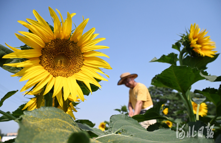 2022年6月20日,河北省邯鄲市峰峰礦區(qū)彭城鎮(zhèn)富田村的農(nóng)民在油葵地里勞作。 通訊員郝群英攝