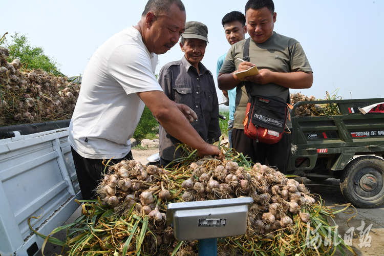 2022年6月20日,河北省張家口市懷來縣大黃莊鎮(zhèn)大黃莊村農(nóng)民在收獲大蒜。通訊員孫慧軍攝