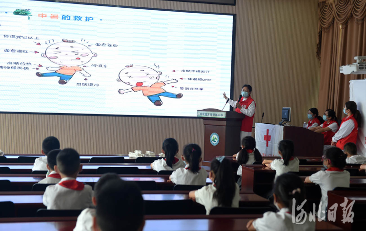 當日,河北省紅十字基金會、河北省愛心公益協(xié)會、河北省人民醫(yī)院的醫(yī)護人員,來到石家莊市維明路小學,對學生進行“珍愛生命,暑假應急防護知識”培訓,以增強學生對溺水、中暑、外傷等防范意識,提高應急救護能力。河北日報記者趙永輝攝