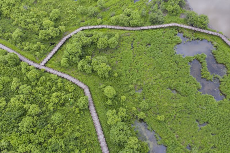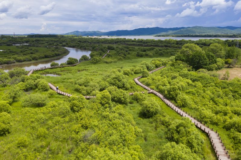 6月19日拍攝的烏蘇里江國家濕地公園夏日風(fēng)光(無人機(jī)照片)。