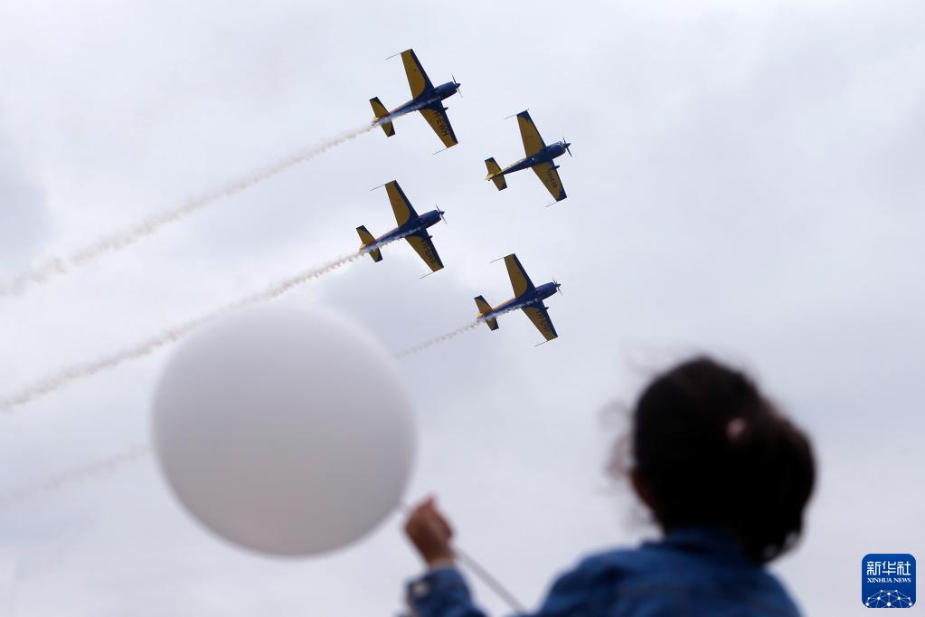 當(dāng)日,布加勒斯特國際航展在羅馬尼亞首都布加勒斯特舉行,吸引了大批民眾到場觀看。
