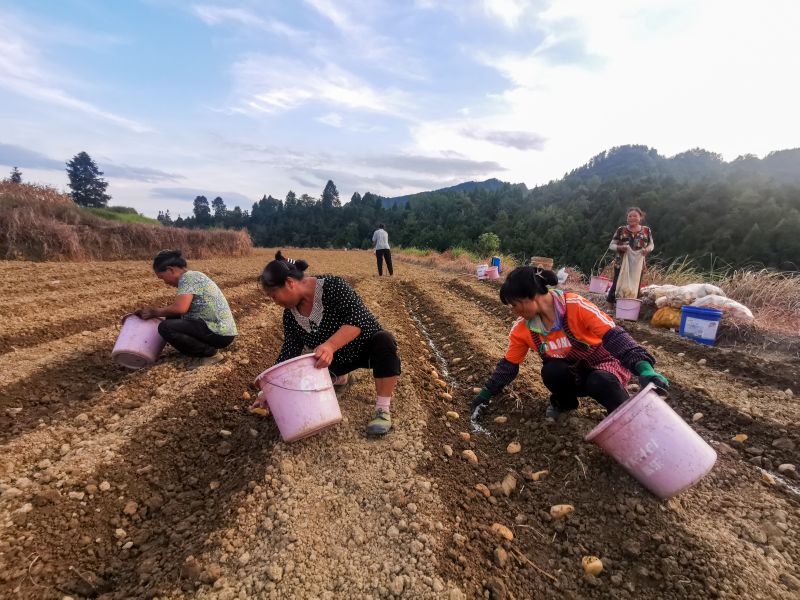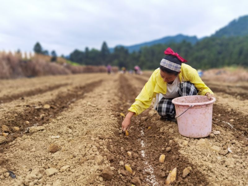 8月30日,貴州省鳳岡縣土溪鎮(zhèn)大連村村民在種植土豆。
