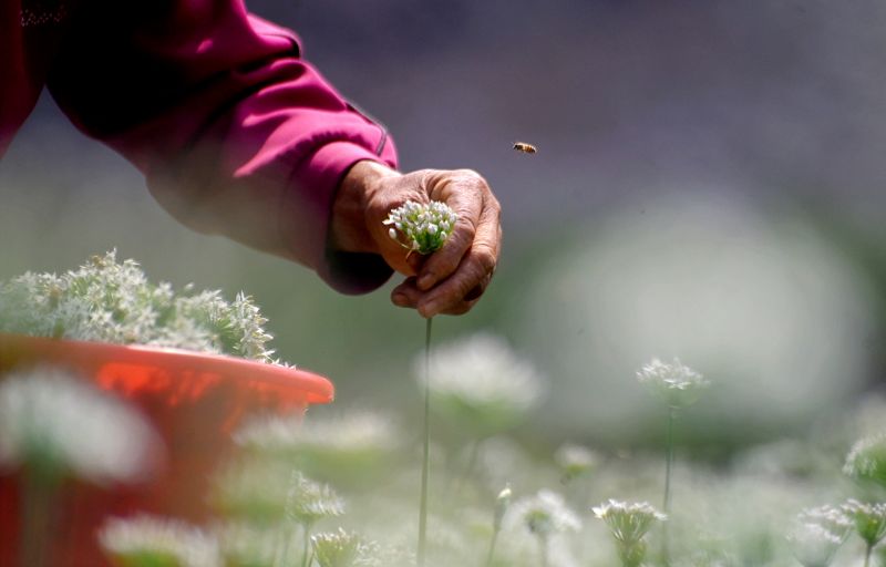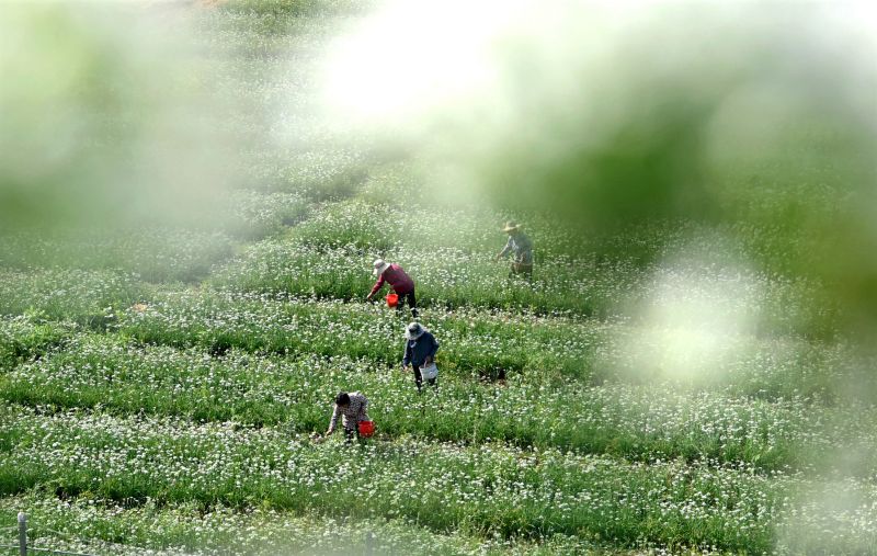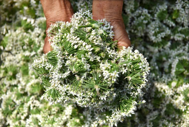 初秋時(shí)節(jié),山東省沂源縣農(nóng)民種植的近萬(wàn)畝韭菜迎來(lái)開(kāi)花期。當(dāng)?shù)剞r(nóng)民加緊采摘,田間地頭一派忙碌。該地的韭菜花作為制作韭花醬、韭花醬菜的原料遠(yuǎn)銷(xiāo)各地,是當(dāng)?shù)剞r(nóng)民秋季增收的特色產(chǎn)業(yè)之一。新華社發(fā)(趙東山 攝)
