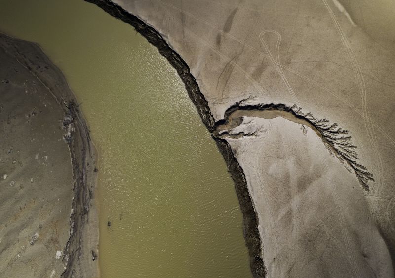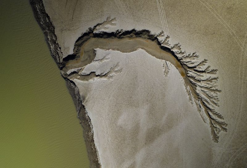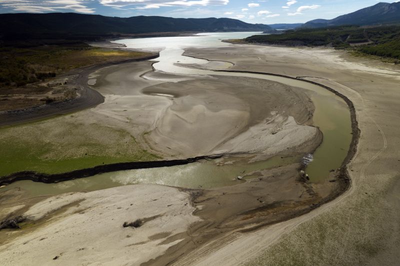 這是8月23日在西班牙納瓦拉拍攝的水位低下的耶薩水庫(無人機(jī)照片)。新華社/歐新