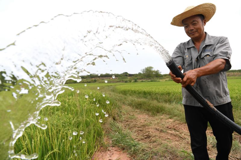 8月24日,肥西縣花崗鎮(zhèn)八里社區(qū)種糧大戶張守勤利用剛打的水井灌溉水稻。