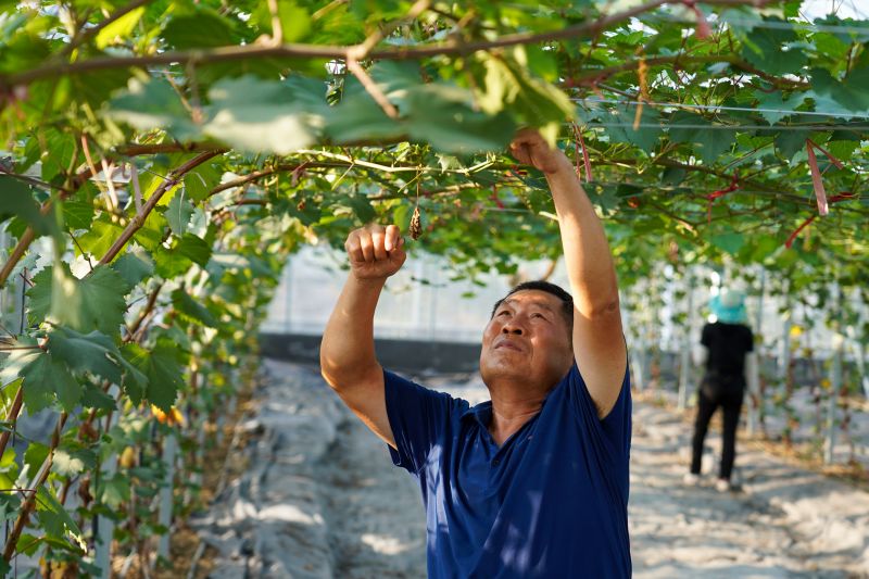 8月17日,園區(qū)工人在為葡萄修枝。新華社記者朱崢攝