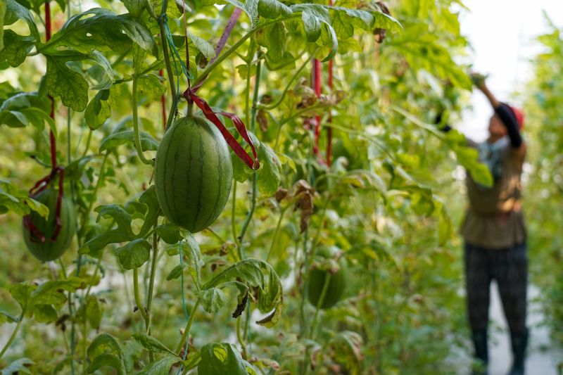 8月17日,園區(qū)工人在收獲西瓜。新華社記者朱崢攝