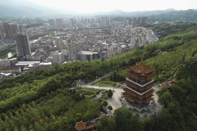 這是8月8日拍攝的陜西省漢陰縣景色(無(wú)人機(jī)照片)。
