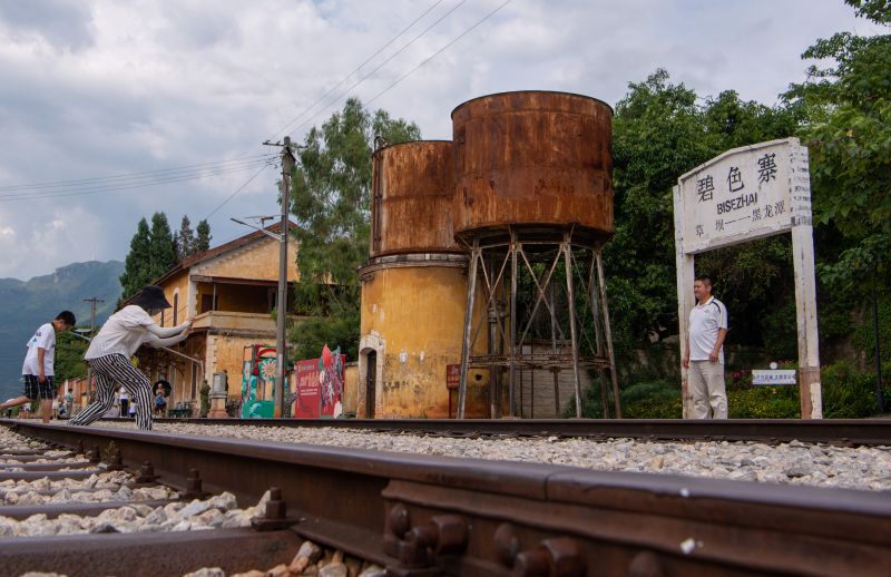 游客在云南省蒙自市碧色寨火車站景區(qū)游覽(8月9日攝)。