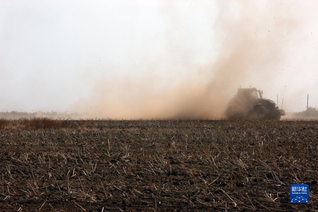 8月7日,在羅馬尼亞泰萊奧爾曼縣,農(nóng)業(yè)機(jī)械在干旱的地里作業(yè)時(shí)揚(yáng)起沙土。