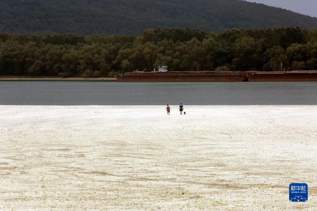 8月7日,在羅馬尼亞泰萊奧爾曼縣,人們走在裸露的多瑙河河床上。