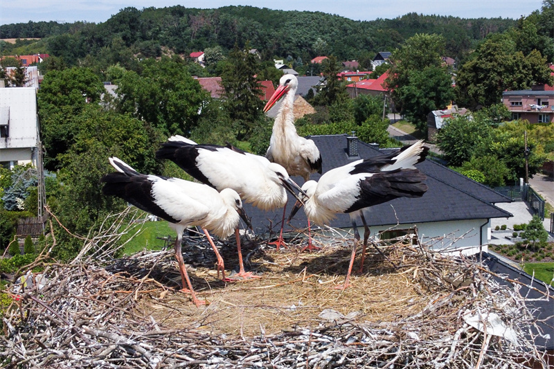 這是7月18日在波蘭西部一個(gè)村莊拍攝的白鸛(無(wú)人機(jī)照片)。新華社/歐新