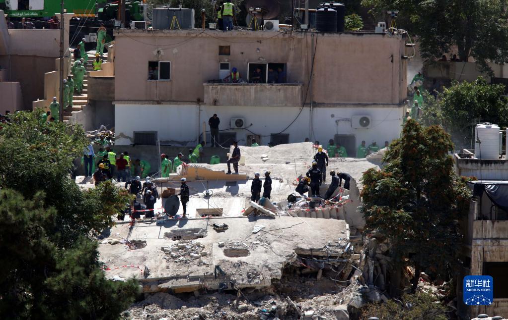 9月15日,救援人員在約旦首都安曼的居民樓倒塌事故現(xiàn)場(chǎng)工作。新華社發(fā)(穆罕默德·阿布·古什攝)