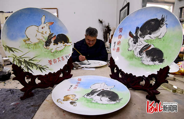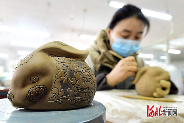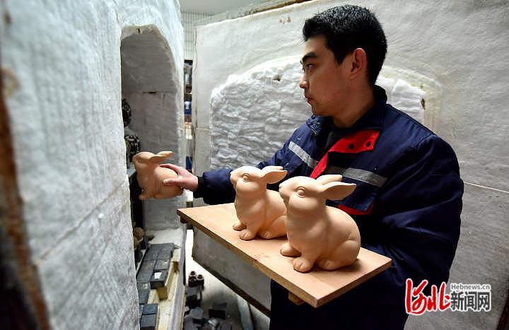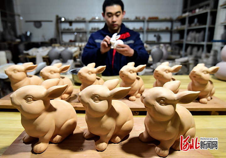 河北邯鄲:“萌兔”主題瓷器生產(chǎn)忙