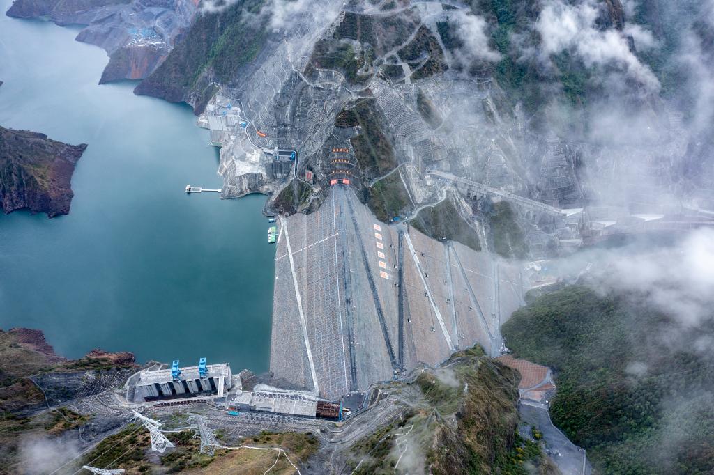 距離柯拉光伏電站50公里的兩河口水電站。新華社記者 薛晨 攝