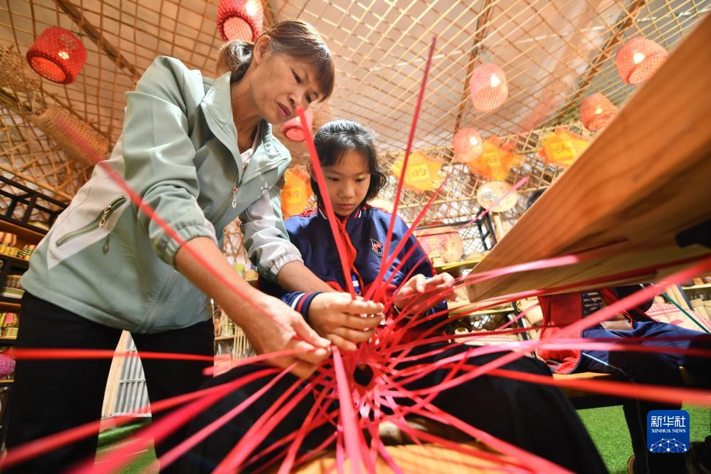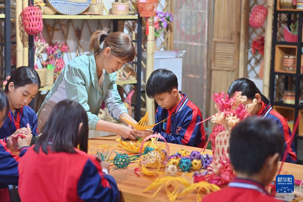 近年來(lái),廣西岑溪市南渡中心小學(xué)將當(dāng)?shù)胤沁z項(xiàng)目——竹芒編織技藝引進(jìn)課堂,打造特色校園文化,豐富學(xué)生課外生活。