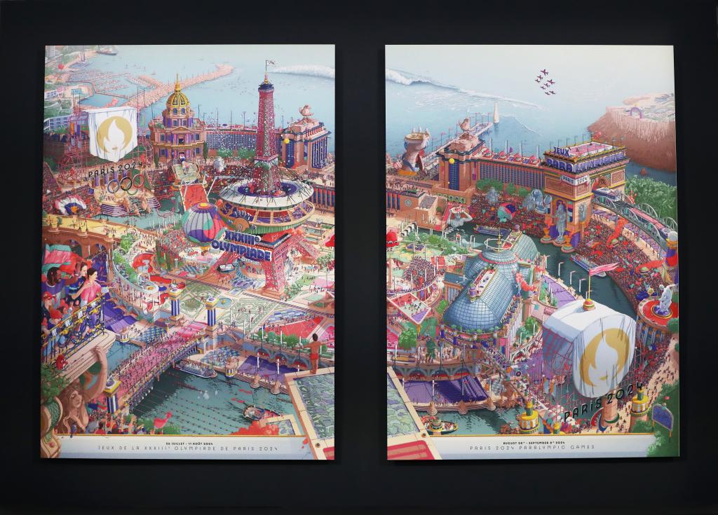 3月4日,由法國插畫藝術(shù)家烏戈·加托尼創(chuàng)作的巴黎奧運(yùn)會(huì)和殘奧會(huì)官方海報(bào)在巴黎奧賽博物館正式發(fā)布。新華社記者 高靜 攝