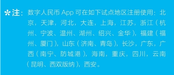 隨著數(shù)字人民幣試點工作不斷推進(jìn),不少外國人對數(shù)字人民幣充滿興趣。支付指南也介紹了數(shù)字人民幣的使用方法。手機(jī)用戶可在應(yīng)用市場下載安裝“數(shù)字人民幣(試點版)App”,根據(jù)App內(nèi)的提示使用。支付指南還提醒了數(shù)字人民幣可在以下試點地區(qū)注冊使用。