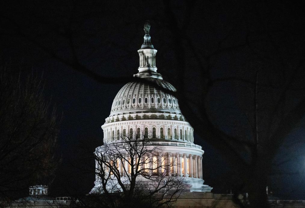 這是2月13日在美國首都華盛頓拍攝的國會大廈。 新華社記者 劉杰 攝